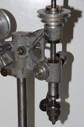 A quite wonderful George Thomas type Sensitive drilling machine for sale. With the desired weighted lever and Parvalux motor. Includes a very good Jacobs 0 to 5/16 chuck with key.