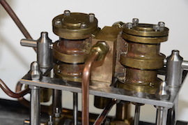 Live steam plant for a boat or launch with twin oscillating engine for sale. With forward and reversing. A super looking setup, ideal for a Thames launch, e.g. 40" give or take.